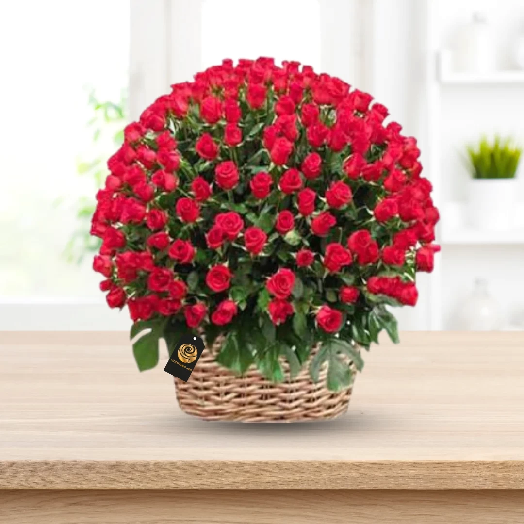 100 RED ROSES IN BASKET