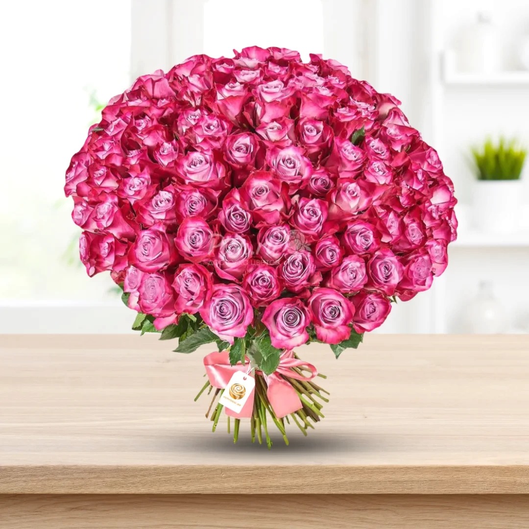 ♦ 100 DEEP PURPLE ROSES BUNCH