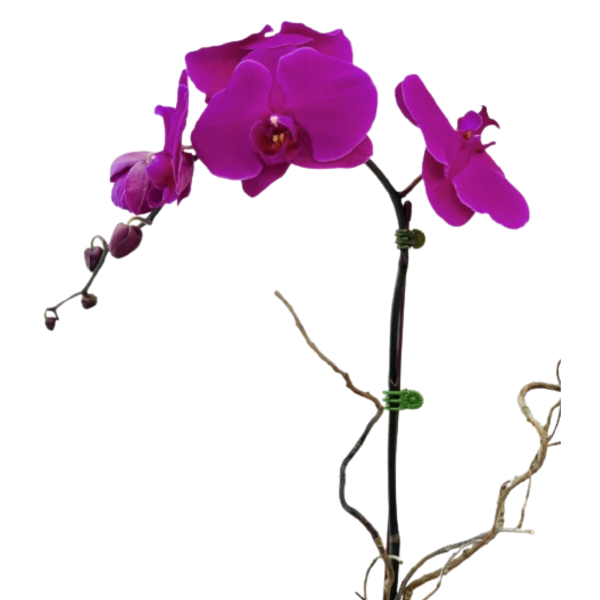 A stunning, elegant orchid stem featuring delicate, rich purple blooms with intricate patterns, perfect for adding a touch of sophistication to any indoor space. Easily accessible through our flower shop in UAE or opt for hassle-free online flower delivery in UAE to bring beauty straight to your door.